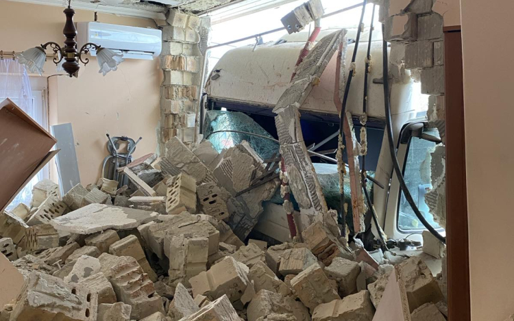 A jármű ledöntötte a ház téglafalát, amely a nappaliba omlott. A baleset idején senki sem tartózkodott az épületben.